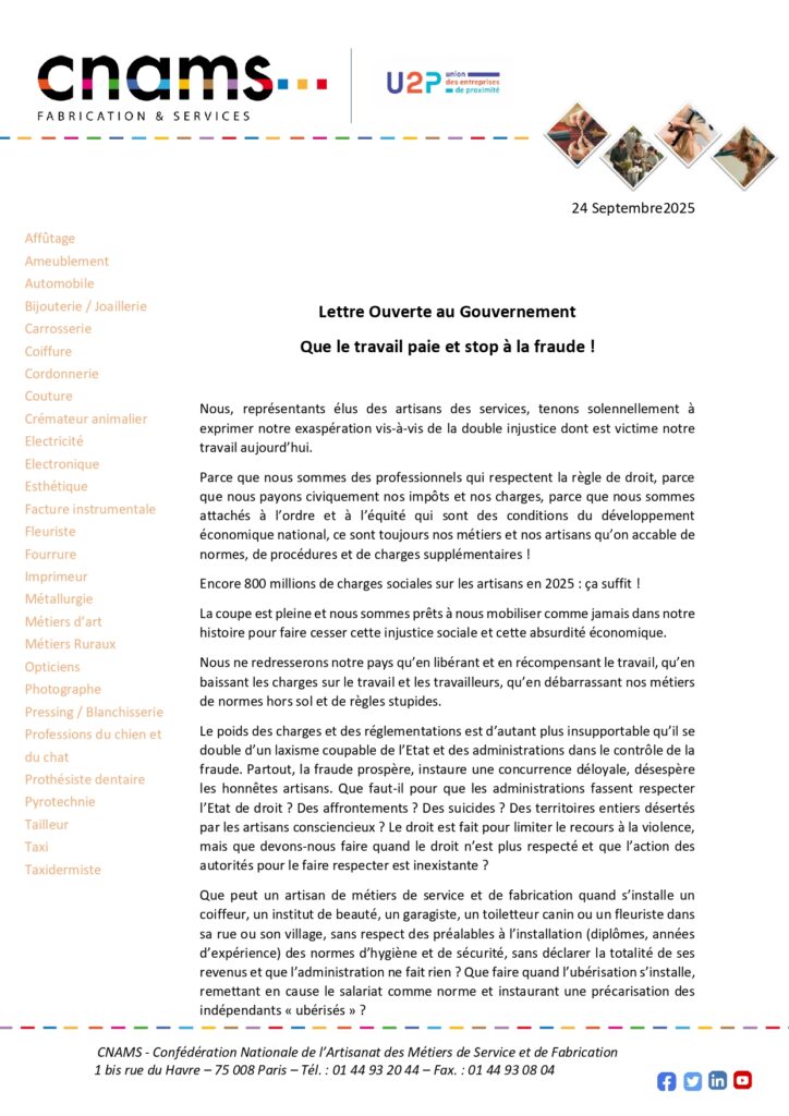 La lettre ouverte de la CNAMS souligne une double peine : les artisans respectueux des règles sont étouffés par des normes et des charges toujours plus lourdes, tandis que ceux qui fraudent – en contournant les diplômes, les normes d’hygiène ou les déclarations fiscales – prospèrent sans contrôle. Coiffeurs, garagistes, fleuristes, prothésistes dentaires… : tous les métiers sont concernés, et la région francilienne n’est pas épargnée.